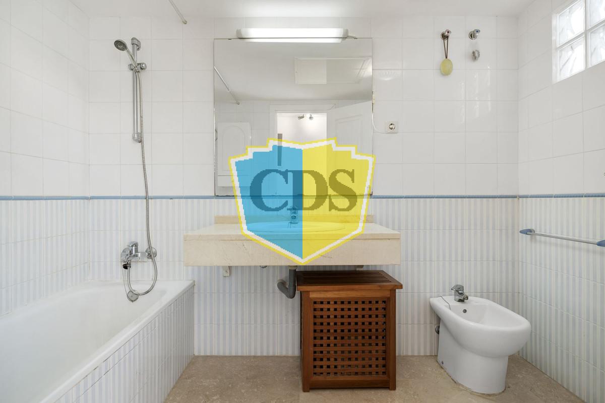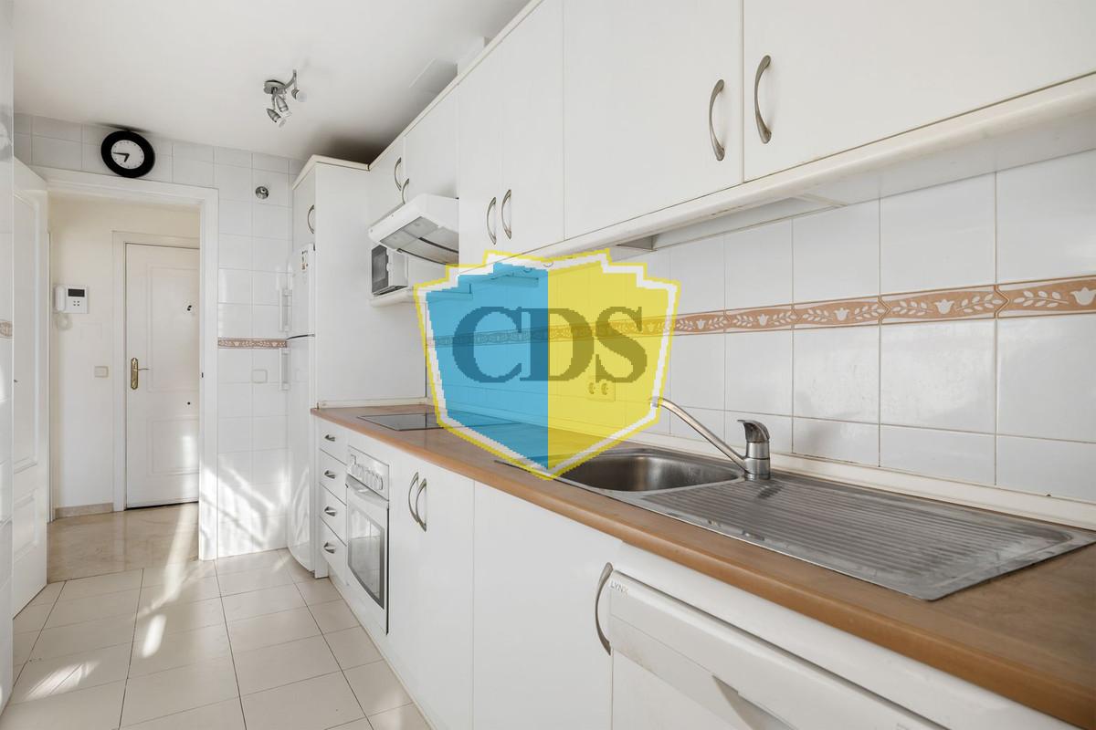 La distribución de este luminoso y espacioso apartamento con suelos de mármol color crema es la siguiente: recibidor con armarios empotrados, cocina con lavadero contiguo, salón, dormitorio de invitados con armarios empotrados, baño de invitados con bañera, lavabo, inodoro y bidé, dormitorio principal con armarios empotrados y baño en suite con bañera, lavabo doble, inodoro y bidé.